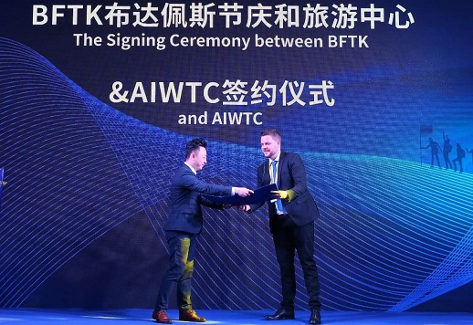 5月17日上午,由重慶市商務(wù)委員會(huì)、重慶市文化和旅游發(fā)展委員會(huì)以及匈牙利駐重慶總領(lǐng)事館主辦,由AIWTC人工智能·全球旅行鏈(www.aiwtc.com)承辦的匈牙利旅游智能化升級(jí)交流促進(jìn)會(huì)暨BFTK&AIWTC合作簽約儀式在重慶國(guó)際博覽中心盛大舉行。匈牙利國(guó)會(huì)副主席雅高布·伊什特萬、重慶市人大常委會(huì)副主任夏祖相以及中匈雙方政府、企業(yè)領(lǐng)導(dǎo)、各大旅行社以及各大主流媒體等參與,共同推動(dòng)旅游智能化升級(jí),見證AIWTC與匈牙利的合作邁上新的臺(tái)階。